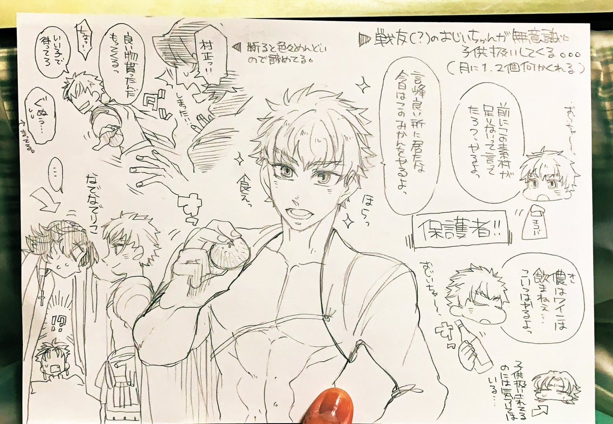 1 14 我がカルデアの言峰は若いクーフーリン(2人)は餌付け済♡な、落書きしてる^^ 23/05/07 22:44