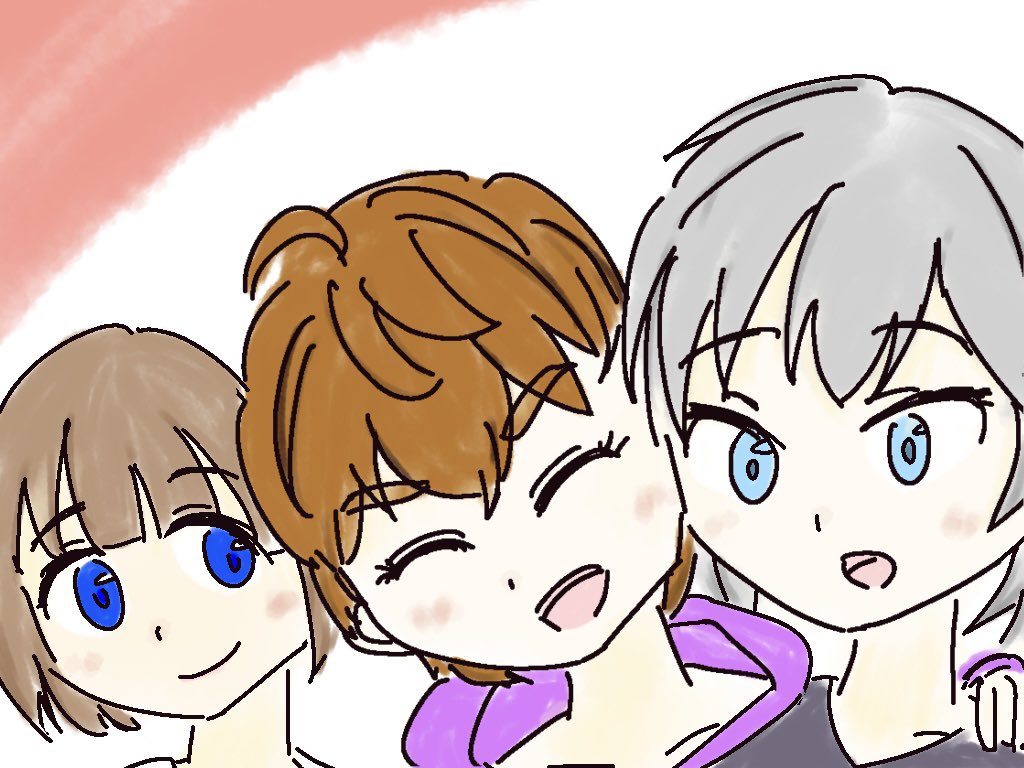#モバマス版深夜の真剣お絵かき60分1本勝負 忍メインにしようと思ったら2人が誕生日なのを知ったわけ 誕生日おめでとうございます #工藤忍 #キャシー・グラハム #アナスタシア