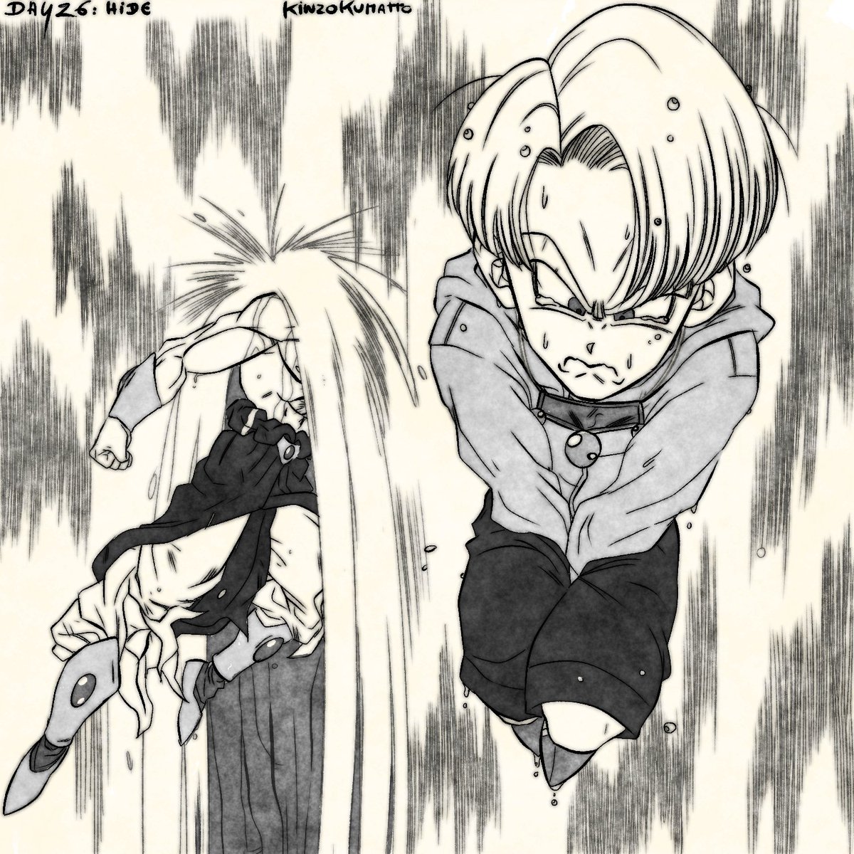 Jour 26: Hide "Heureusement que Papa n'est pas là." Ha ça c'est sûr, le pauvre se ferait allumer sinon. #BrolyTober #inktober2020 #Inktober #drawtober #Artober2020 #Broly #ブロリー