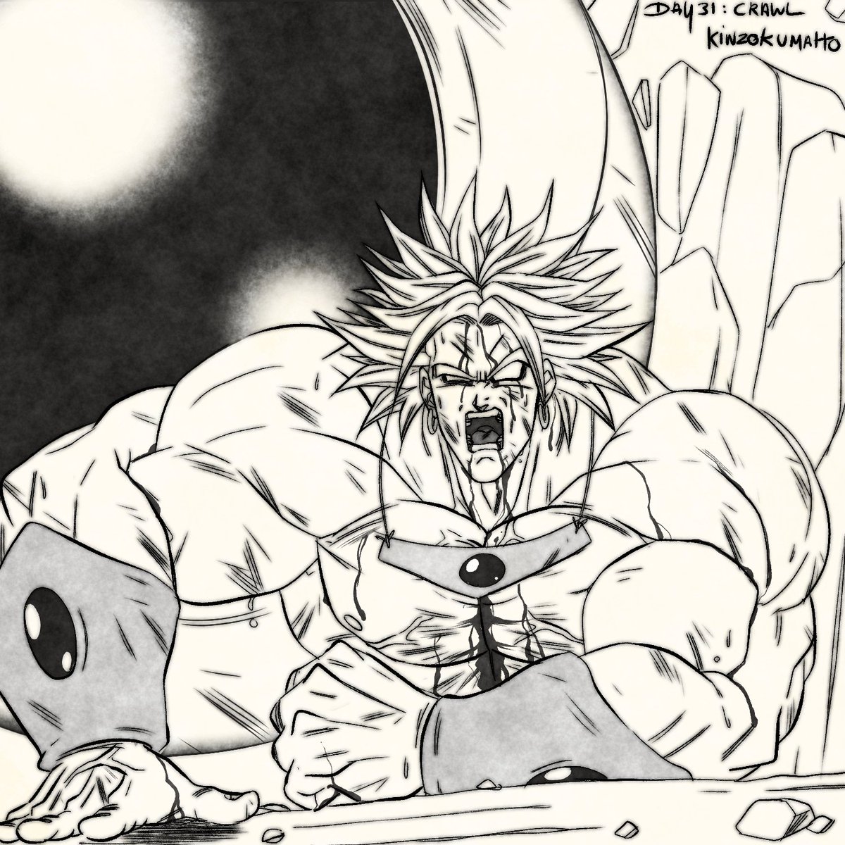 Jour 31: Crawl "Je rampe vers une suite, mais mon petit doigt me dit que je devrais pas." #BrolyTober #inktober2020 #Inktober #drawtober #Artober2020 #Broly #ブロリー