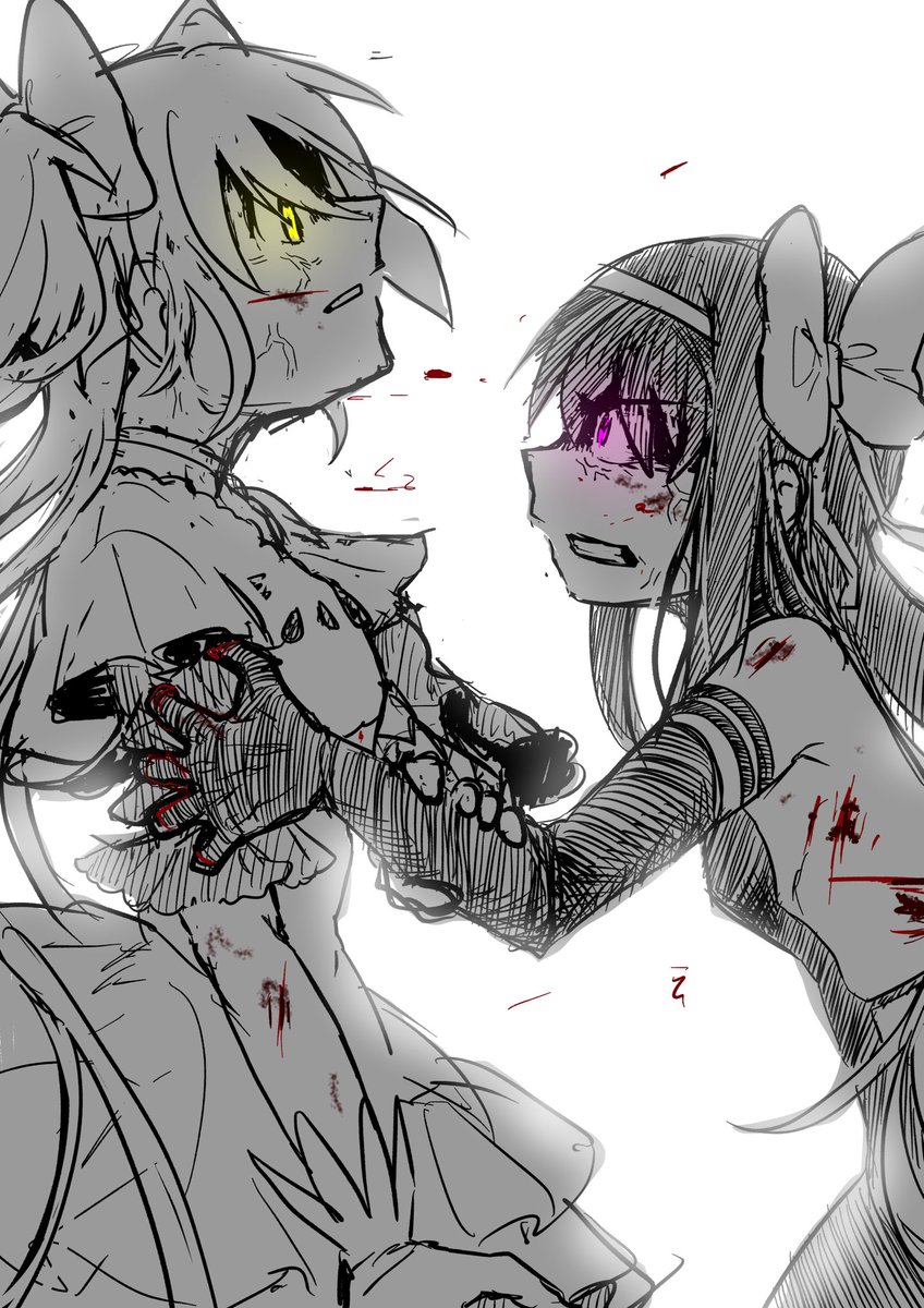 脳裏にふっと出てきたアルまど様と悪魔ほむらを描いたけど、解釈違いまっしぐらの、絶対存在しないだろって関係性になっちゃった・・・