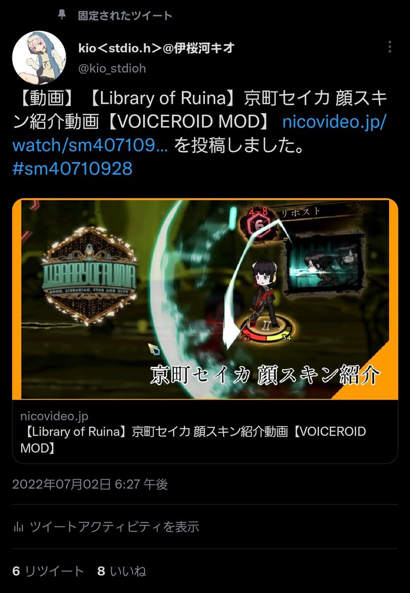 ついに…完成しましたーっ! Library of RuinaのMOD「京町セイカのページ」を公開しました! 是非図書館にてセイカさんで接待してみてください! #LibraryOfRuina #京町セイカ #VOICEROIDMOD部 steamcommunity.com/sharedfiles/fi…