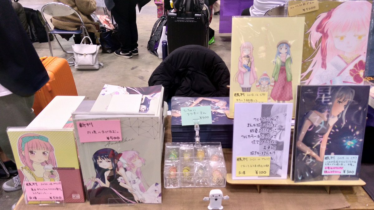 31 49 おはようごじゃいます。 本日はプリレコ宜しくお願いしますだー。 新刊はご用意しなかったので妖怪色薄のミニ色紙さん(2000)と豆色紙(500)屋さんでつ。 A-18、かれんさんとぽじめの間におりますー。 ぽじめの色紙狩りのついでにでもどぞー。 22/05/03 08:45