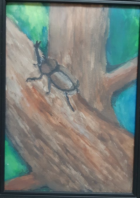#水彩画 #カブトムシ #自然 だいぶ前に描いたやつだネ