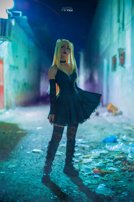 "Trabajaré duro para que me ames" Uff ♥ me encanto esta sesión de misa y aun faltan fotos, siempre fue mi sueño hacer cosplay de misa 🥰 me ayudan con un RT? 👉👈 #misa #misaamane #misamisa #DeathNote #cosplay