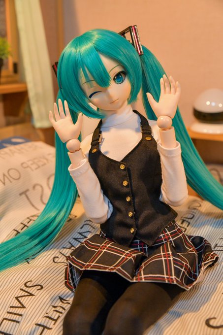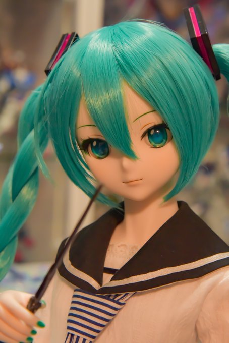 #深夜の初音ミク撮影60分一本勝負 2/5 お題「笑」遅刻💦 私「ミクさん、スマイルくださーい」 長女ミクさん「こんな感じですか?」 私「そんな感じ!」 私(ミクさんスマイル、めっちゃかわいい!)