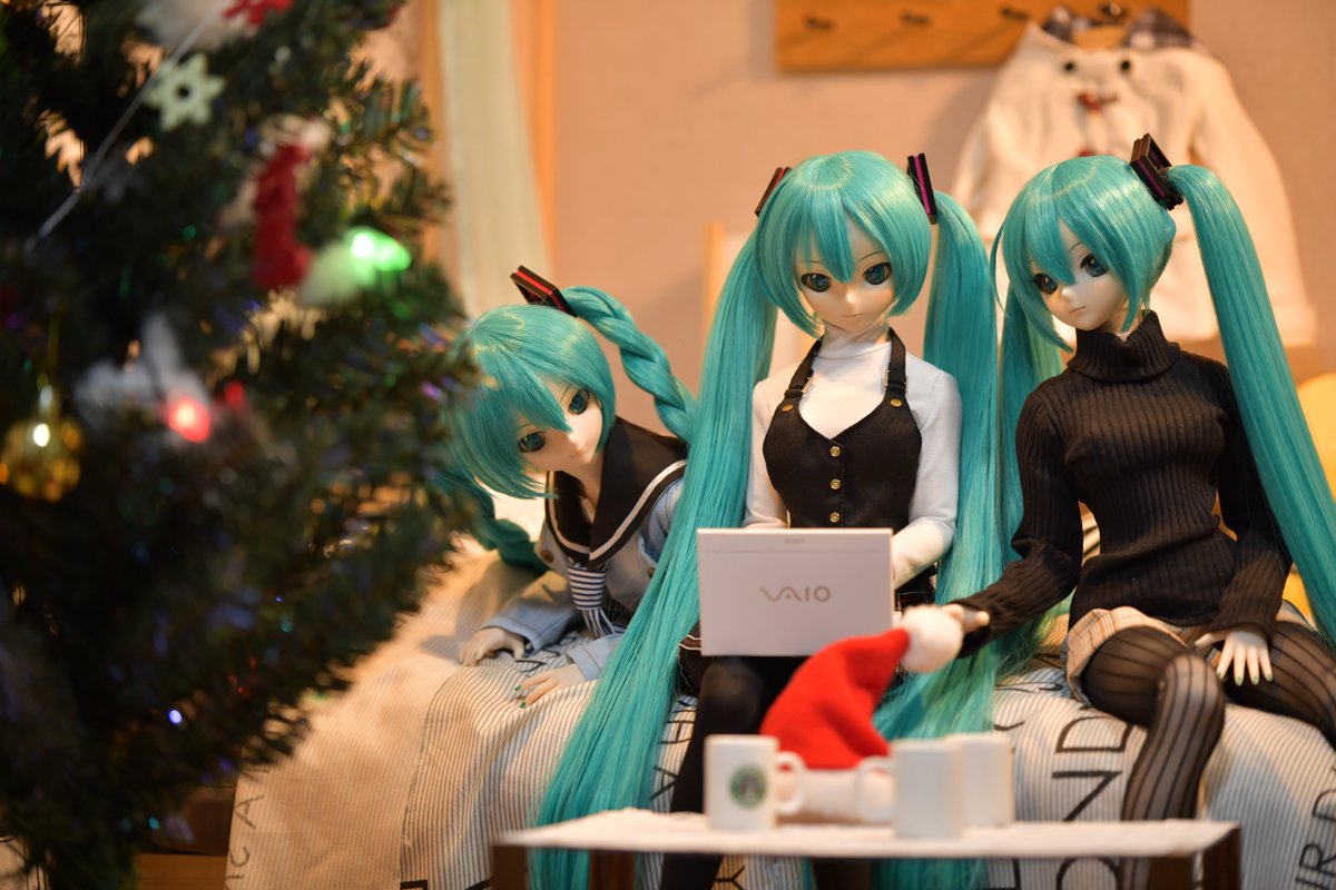 #深夜の初音ミク撮影60分一本勝負 12/24 お題4「フリー」 私「・・・はっ!、爆睡してしまった💦なんか騒がしいぞ」 長女さん「マスターが寝ている間に欲しいもの買いましょう!クリスマスですし」 次女さん「私これ欲しいー!」 三女さん「私も欲しい」 私(・・・メ、メリークリスマス💦)