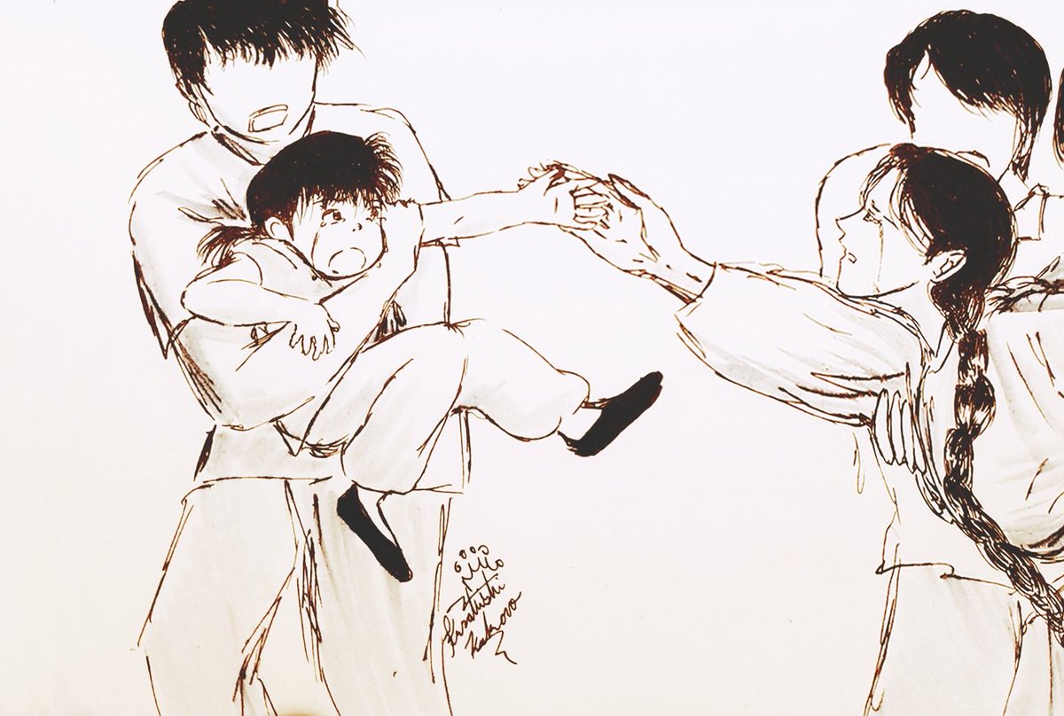 Day 13 #Inktober2018 prompt #guarded the scene outside the museum when #yutlung clings to #blanca unconsciously just shows how much of a child he still is despite what hes going through #bananafish #バナナフィッシュ #bf #inktober #鯨李月龍 #月龍 #ブランカ #leeyutlung #ユエルン