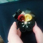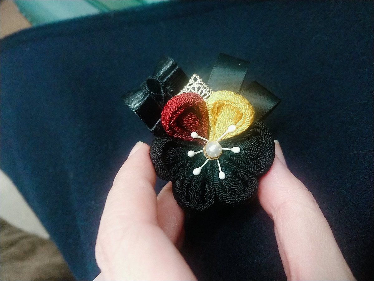cos⚠️おそくほ 今日は前回台風で流れちゃった雛ちゃん本丸のリベンジ回でした! 雛主から光忠イメージのつまみ細工賜りました可愛いぃぃ💕 腰の紐のところに付けてた(*´ω`*) #0308リベンジ雛本丸2020