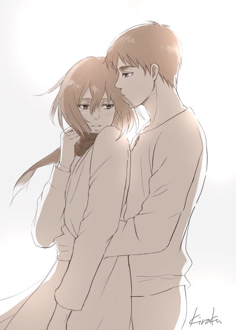 🌧 エレンくんはしれっとこういうことしてミカサをドキドキさせてそう… という妄想エレミカやっと描けた