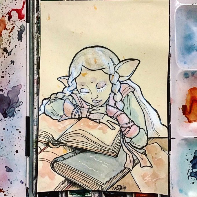 Day 14 - Books I decided that #BreaTheGelfling was perfect for the theme! Who else loved #DarkCrystalAgeOfResistance ? #inktober2019 #inktober #creamtober2019 @creamsherryart