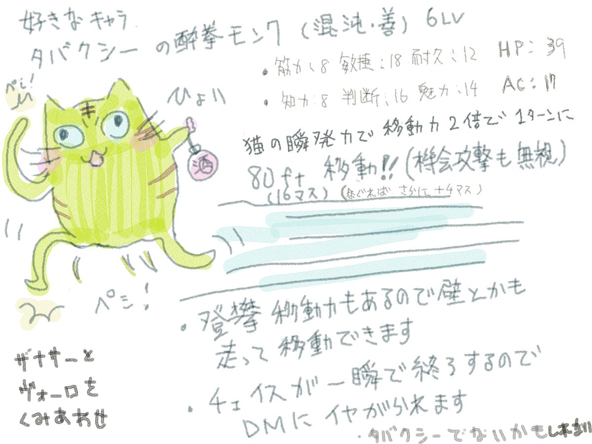 1 4 猫の日、終わったけどd&dで使ってたタバクシーのモンク。#猫の日 #dndart 22/02/23 11:42