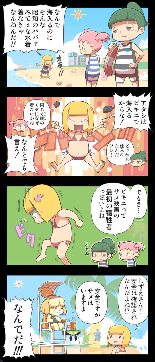 191 723 あつまれどうぶつの森の漫画。売ってる水着が「獲ったどー」するタイプしかなくて怒り。 20/08/30 14:46