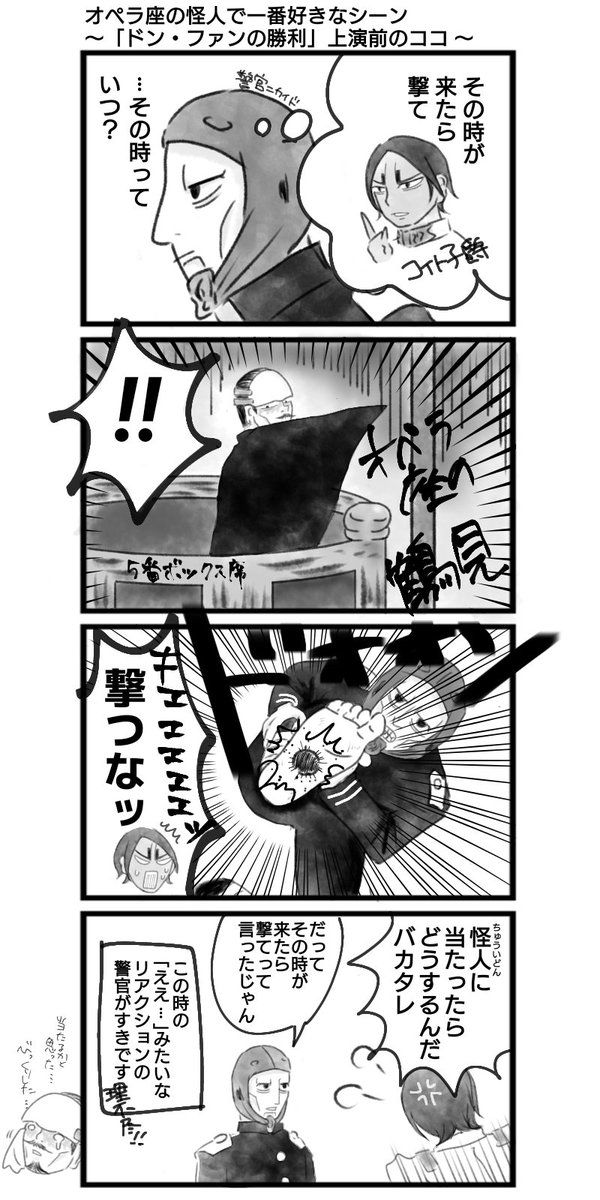 5 8 四季オペラ座のかいじんで一番好きな場面を描きました🎭️ (代理出演:カムキャラ) わりとマニアックなシーンかもしれない… オペラ座大阪公演今月で千秋楽だけど来年4月に神奈川で開幕するからみんな観て…オペラ座はいいぞ…… 23/08/18 19:00