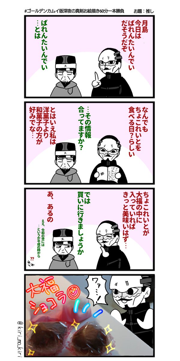 3 13 #ゴールデンカムイ版深夜の真剣お絵描き60分一本勝負 【お題】推し 4コマ目はフライング作成しました🙏 ワンドロ初参加です🙇♀️ありがとうございました! 23/02/14 23:12