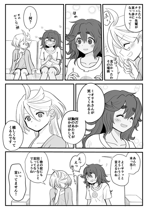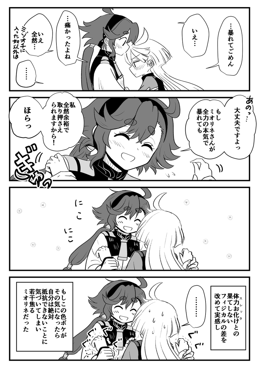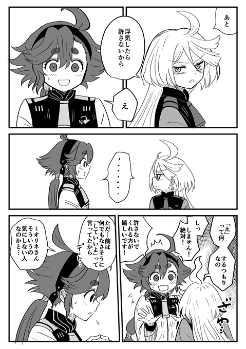 11話ハグ後のスレミオ漫画。1日3回メール欲しがるような子が浮気とか平気と思えないし「デートしていいよ」って相当我慢して言ってたんと違う?かわいいね…