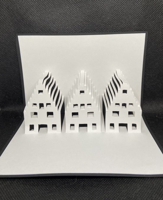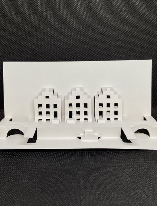 1/21-26にOPAgalleryにて個展「トトの折り紙建築通信」を開催します。今回展示しませんが、オランダ•アムステルダムの街と運河の折り紙建築を作ってみました。展示では別バージョンを紹介します。opagallery.net/galllery.html #opagallery #折り紙建築 #ペーパークラフト #切り絵