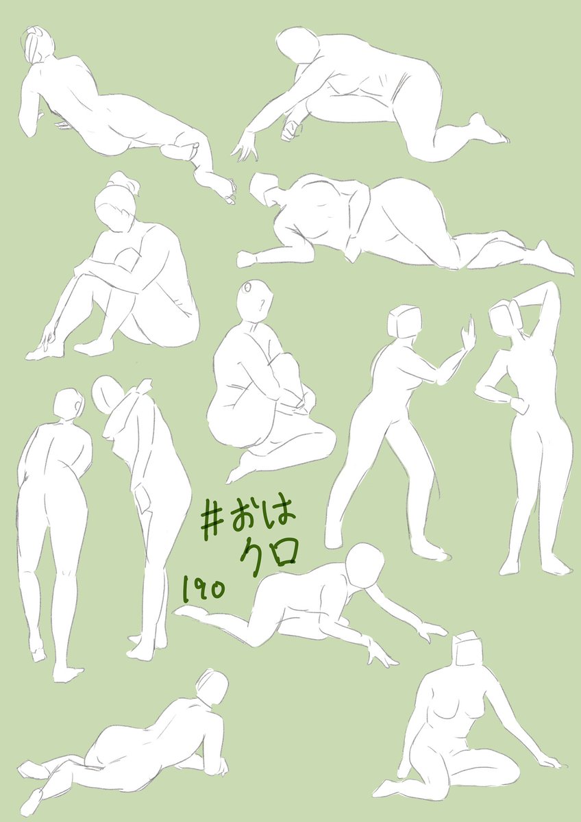 #おはクロ 2日目!! 得意なポーズと苦手なポーズの差が結構あるなー 好きな部位は普段からよく見ちゃうから比較的上手くかけてる気がする