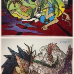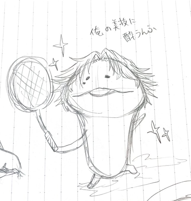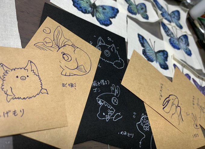 #絵を描く理由はなんですか見た人も答えるんだ 昔は2〜3枚目みたいにガッツリ描いたり切り絵をしたりしてたんだけど、立体メインになってからは1枚目のような手癖によるアイデア出しの為になりつつある🤔 因みに1枚目は淡水の主の原案となった落書き💪🥳