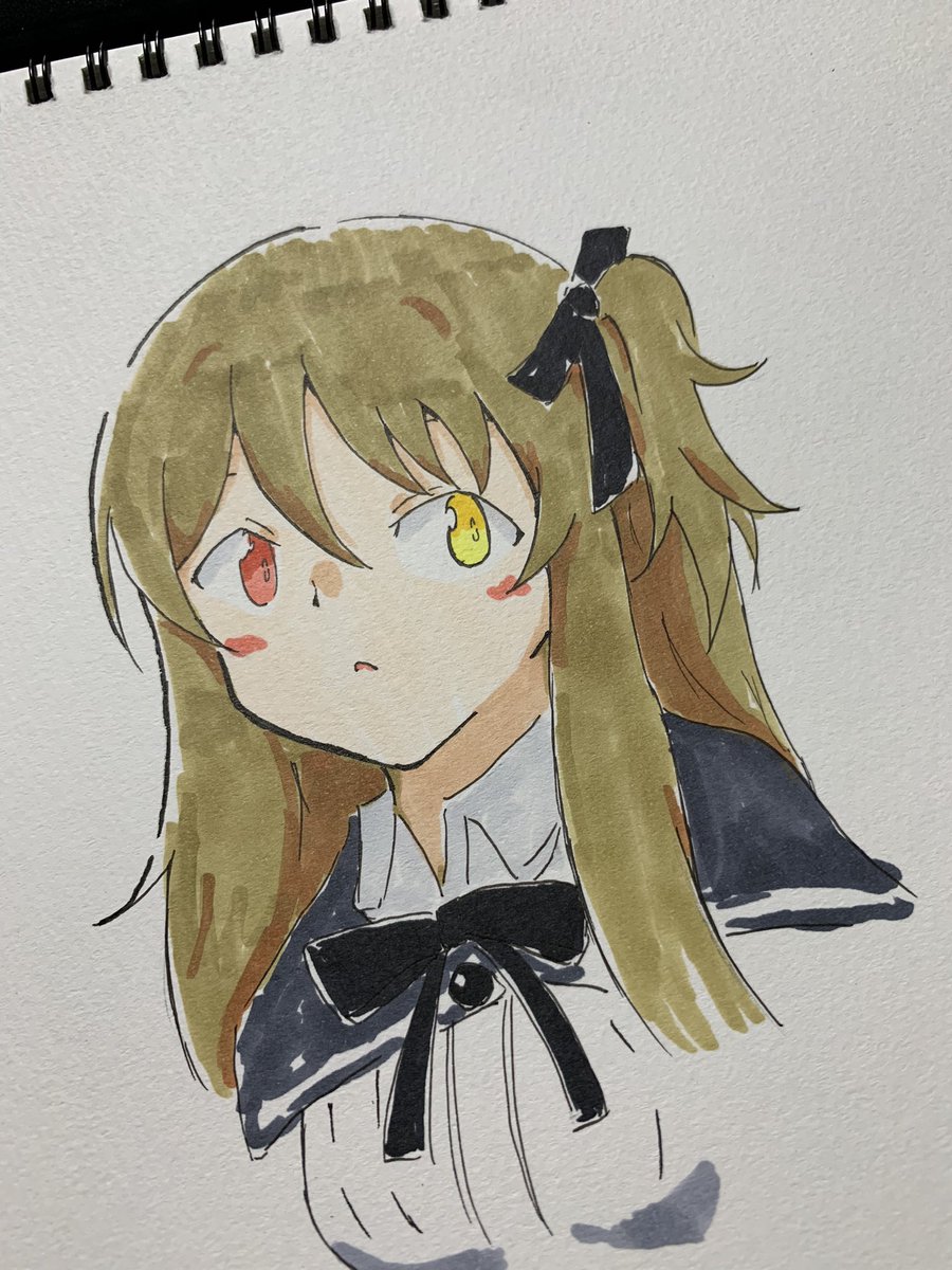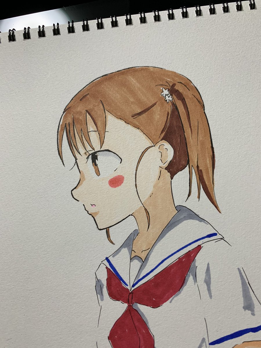 7 19 お絵描き #白木陽芽 #私の百合はお仕事です #リーベ女学園記録係 #アナログ絵 23/04/25 21:41
