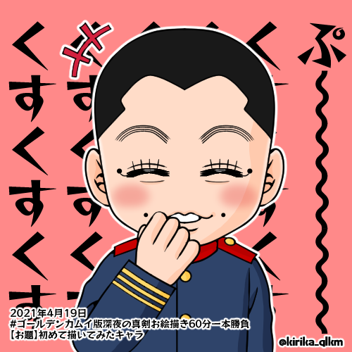 7 57 #ゴールデンカムイ版深夜の真剣お絵描き60分一本勝負 【お題】初めて描いてみたキャラ 鶴見中尉に「戦友だ」と言われて吹き出す宇佐美 21/04/19 23:09