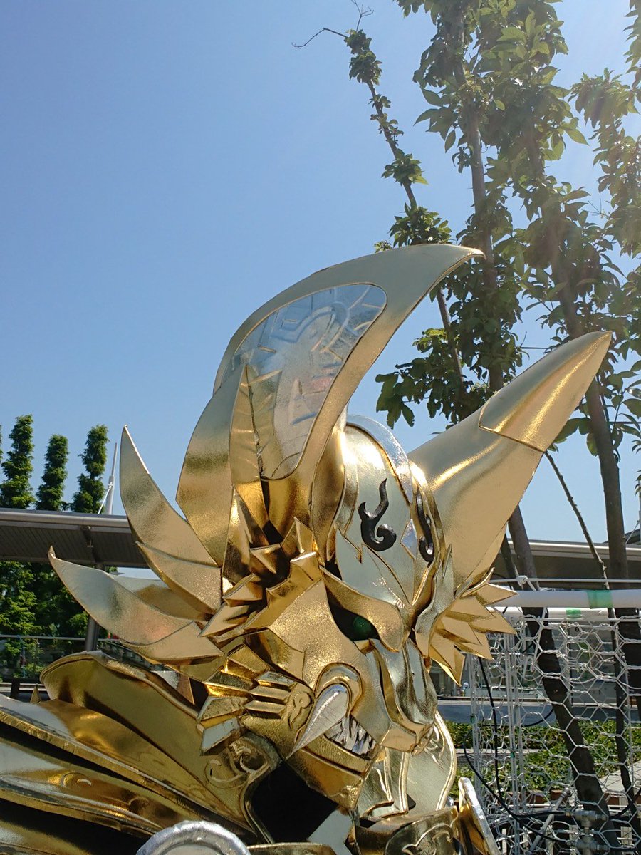 作業中に目の前を撮って上げた牙狼が改めて見ると微妙、けどRTやイイネがあって消すのも申し訳ないので上げ直し。 我が家の牙狼はこんな感じで部屋に飾られています。 コミケ、行きたかったな〜 #ゴールデンウィークなので金色の画像を貼る #エアコミケ3 #エアコス