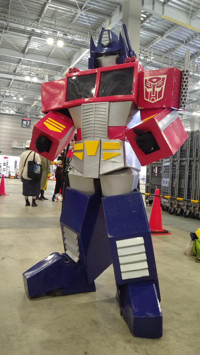 お着替え完了 通りがかりのくろぼうしさんが居なければ衣装を着ることも出来なかったかなもしれない… 体力が切れるまでコンボイ司令官で散歩しています #コミックマーケット100 #コミケ100 #トランスフォーマー #コンボイ #コスプレ