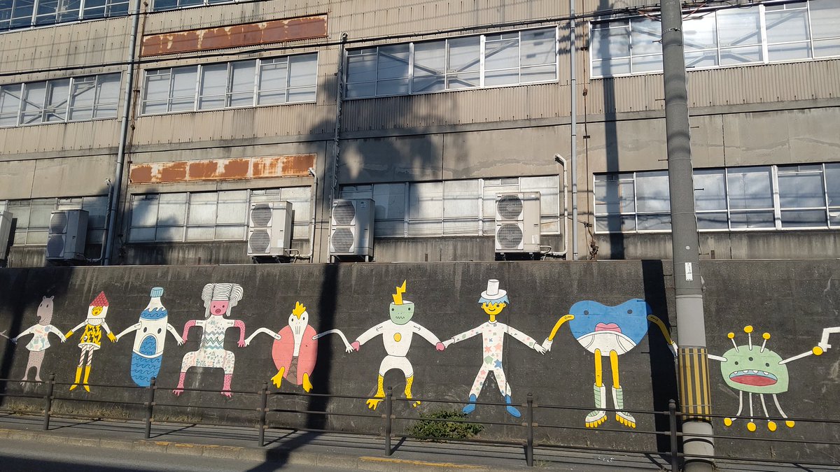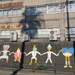 スーパーロボコス大展 会場の場所、初見だとかなり場所がわかりにくいぞ!! ※私は昨日設営日に行って周辺で1時間程ウロウロしました 目印は大量謎キャラの壁の内側の建物です。 この謎キャラを右に見ながら工場?の入口にしか見えない敷地に入っ た建物の2、3、4階です。 #スーパーロボコス大展