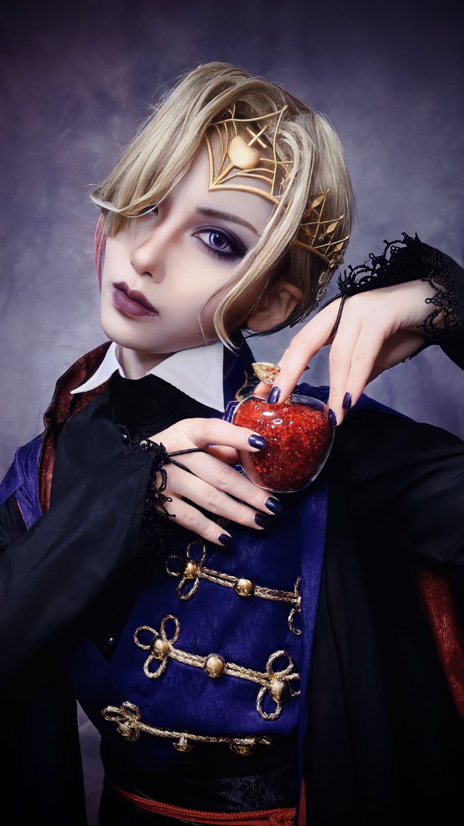 #コスモスナップ07 【作品名】ツイステッドワンダーランド 【キャラ名】ヴィル・シェーンハイト 【一言】自撮りでも重厚感が出るように背景やフィルター加工に拘りました! メイクやネイルは色を混ぜてキャラに近づけました。