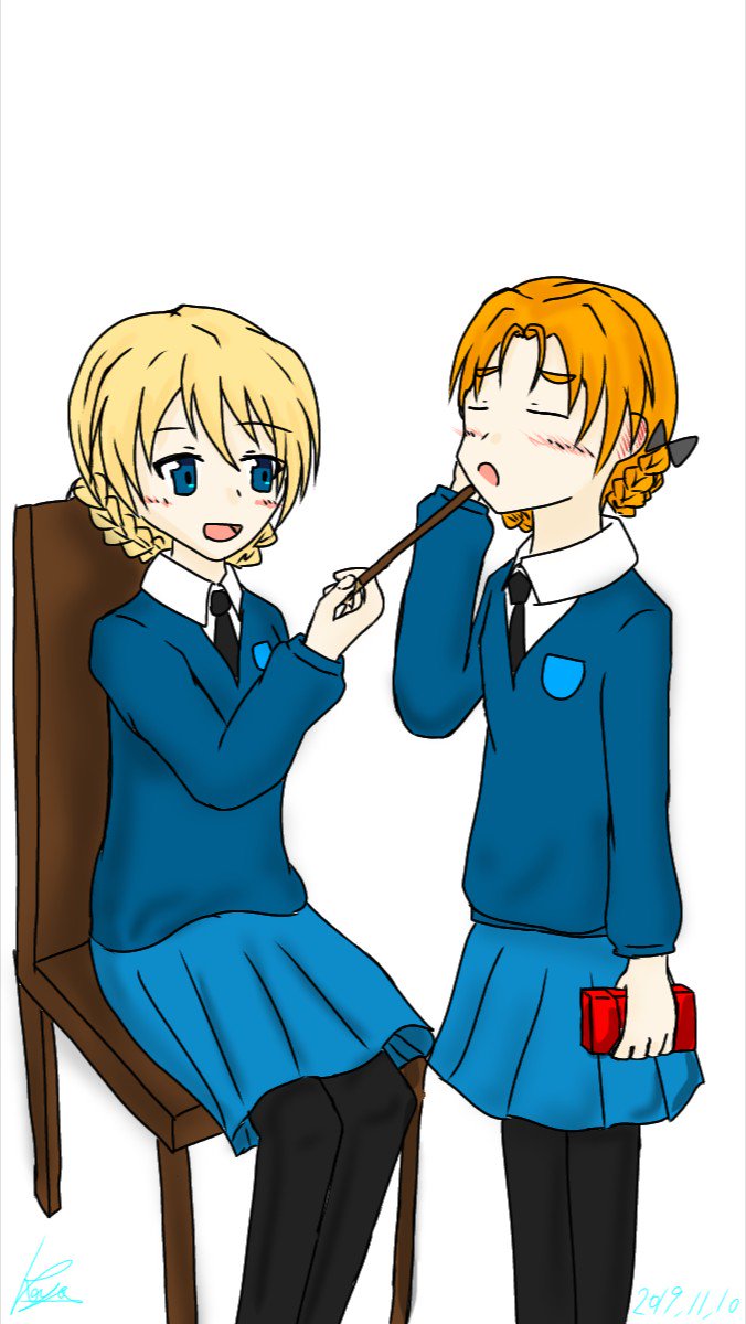 #ガルパン版深夜のお絵描き60分一本勝負_20190828 #ガルパン版深夜のお絵描き60分一本勝負 ペコちゃんです! まーたダー様がいじって怒らせたんでしょ でもダー様にいじられるのも好きなんでしょペコちゃ…あ…ちょ…なんでもないですカタ:( ;´꒳`;):カタ