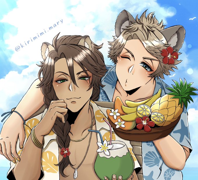 TLにアロハがいっぱい流れててウキウキ🎶するので私も再掲で便乗~ #twstファンアート #ツイステファンアート スイスイ楽しみですね~🌺