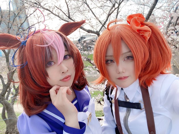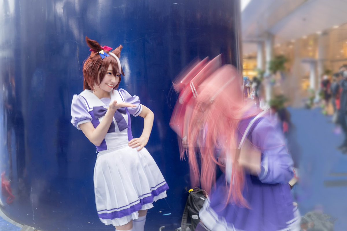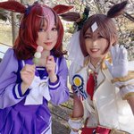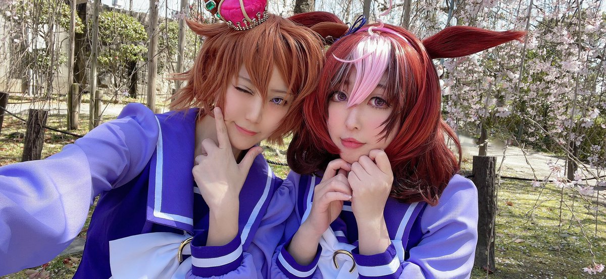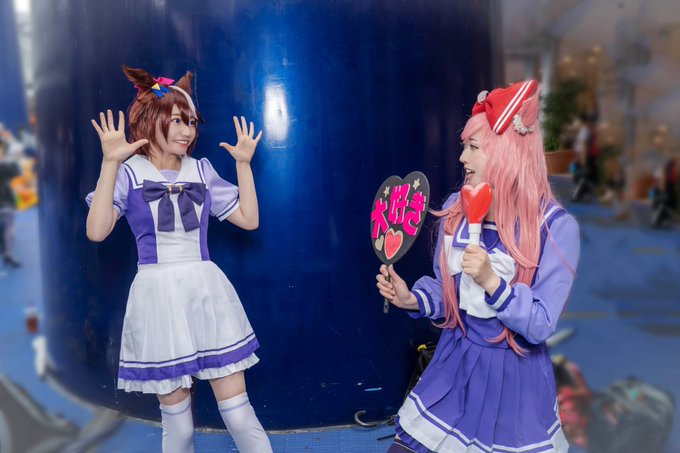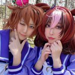 【COS】ウマ娘🐎 きょうの勝利の女神は あたしだけにチュゥする😇🙏🏻✨ (いえいえ みんなの女神ですから 厚かましい事言いましたすみませんんんんん)(ファンサで萌え死ぬ…!!) トウカイテイオー🌸海月花柚さん(@hanayu_cos ) アグネスデジタル🍀きりん 撮影📸菊地じゅすけさん(@qkikuchi )