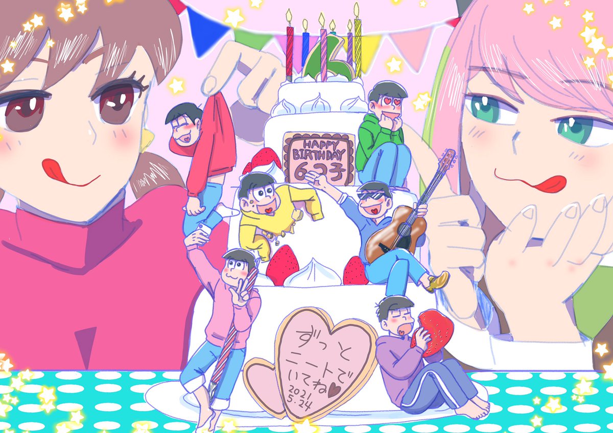17 70 6つ子お誕生日おめでとう🎊🎉🎂🎁🎉🎊 今までも、これからもずっと愛してるぜ✨ 元気いっぱいでいてくれよな!!!!!!!!! #松野家6つ子生誕祭2021 #松野家6つ子生誕祭お祝いイラスト 21/05/24 18:01