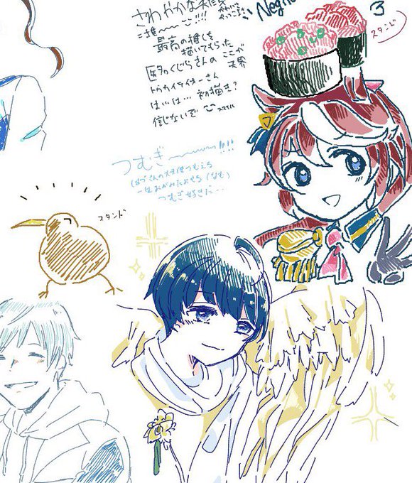 1 14 お友達が描いてくれたつむぎとtイオーと私が描いたキーウィ 22/01/31 21:38