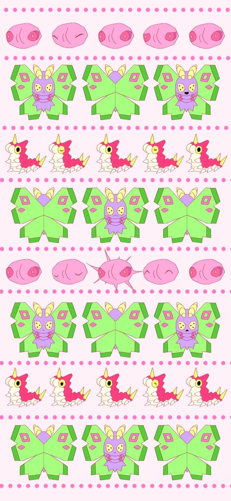 スマホの壁紙用にドクケイルを作りたかったから、ドクケイル一家描いた☺️ 前描いたカクついたドクケイルを元にしてるからケムッソとマユルドもなるべくカクカクに笑 #虫ポケの日 #虫ポケモンの日