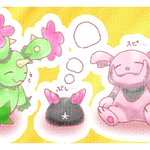 #ポケモン版深夜の真剣お絵描き60分一本勝負 グランブルとナマコブシとマラカッチ 一緒におねんね😴
