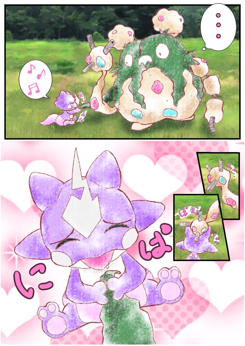 9 29 毒の日なので(うちの子設定の)エレズンとダストダスの出会いを描いてみました☺️ 背景は時間なかったのでそれっぽい素材を使ってます #毒タイプの日 #毒ポケモンの日 22/10/09 20:28