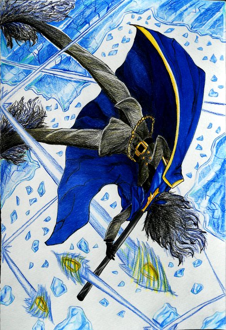 Galleryハルイト様 @gallery_haruito 初参加させていただきます!今後とも機会があれば企画の方を盛り上げていきたいです😆 さて!好きな色をメインテーマにとのことで、自分が好きなブルー系グラデ×ブラウン×アクセントにイエローで描いてみました🥳🎶 #ハルイト_好きな色展 #色鉛筆