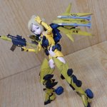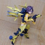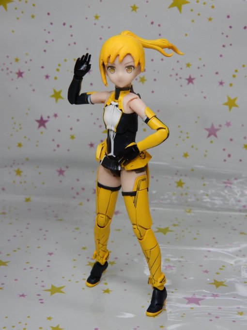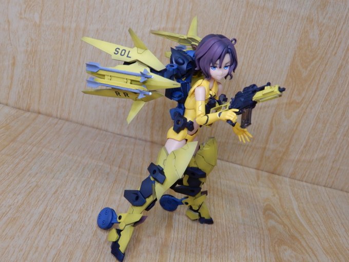 黄色いエーススーツV!? いったい何者なんだ…!! オリジナル子ちゃん作りました。 体はまんまエーススーツVですが…。 金髪ポニーテールが眩しい娘です。 部品加工やパテ工作はまだまだ修行が必要ですね…。 #メガミデバイス