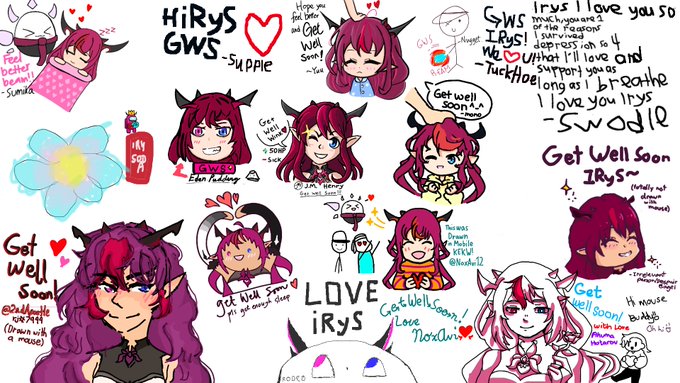 HIRyS! We IRyStocrats gathered and had a collaboration in aggie to wish you a speedy recovery. We appreciate everything that you do and we wanted to give back to you, so here are canvases full of love and support from the IRyStocrats! Get well soon, IRyS! #IRySart #IRyStocrats