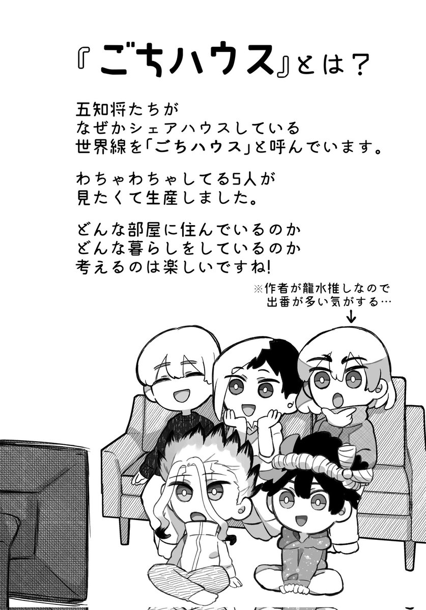 5 12 【3/19春コミ The ROCK 12】 新刊サンプル オールキャラ本 A5 /28p/¥400(※予定) ごちしょうシェアハウス本です。 カプ要素はありません🏠 (1/3) 23/02/24 20:49