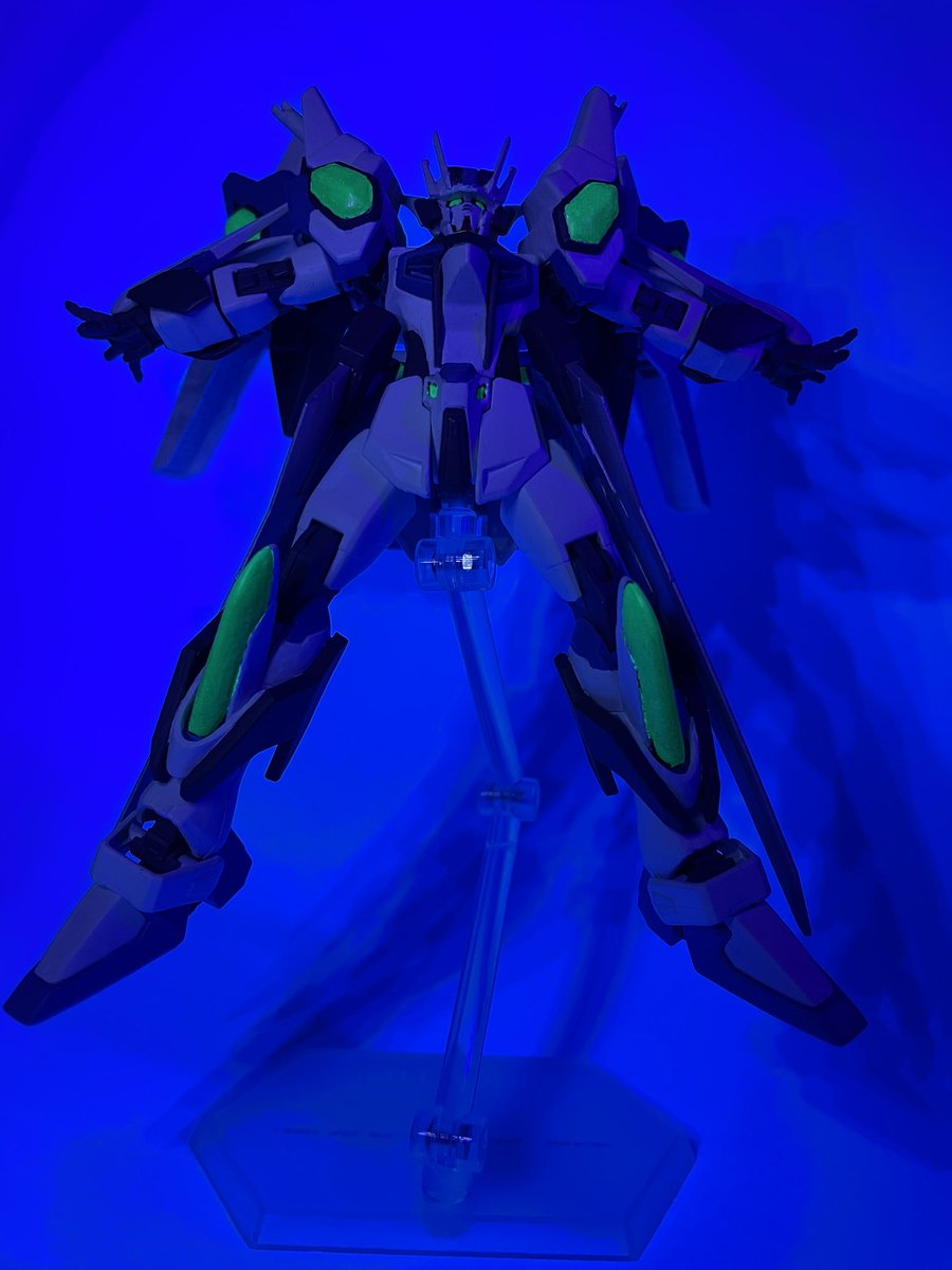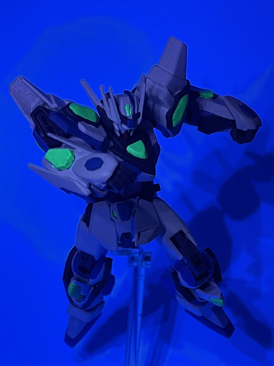 スカイライズガンダムをブラックライトで光るようにしてみました〜 初めて蛍光塗料使ってみたけどこんな簡単に愛機をカッコよくできて感動した! 今後も使っていこうかな! #ガンプラ #ガンプラの画像貼るとRTされると聞いて