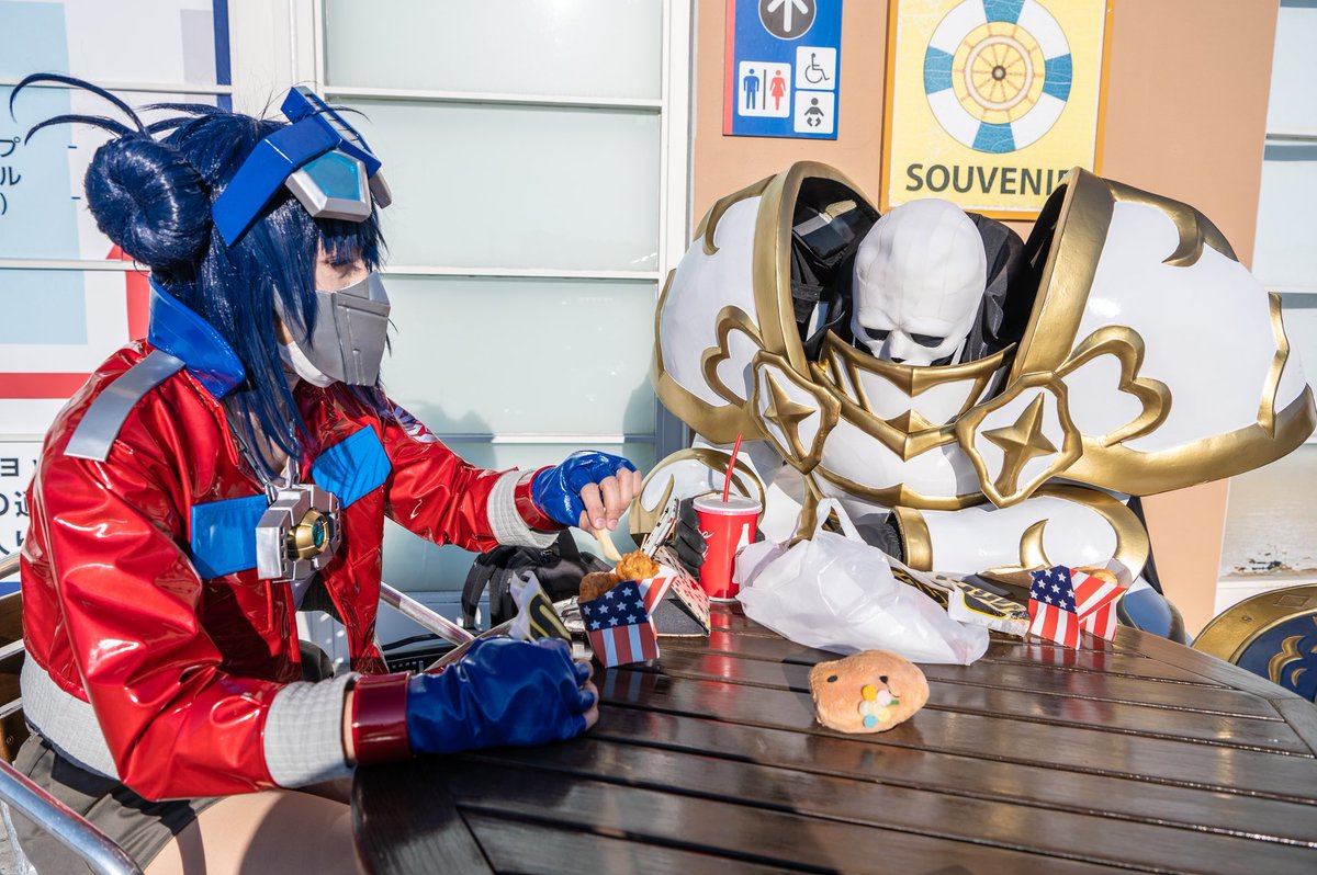 ラグコスプチの時に骸骨騎士様の兜剥ぎ取ったから今回はぶち殴って飛ばした #グリッドナイト同盟活動録 #グリッドマンユニバース #コスサミ2023 撮影・おーが(@guy_ferd ) 骸骨騎士様・ファラス(@nazca02 )