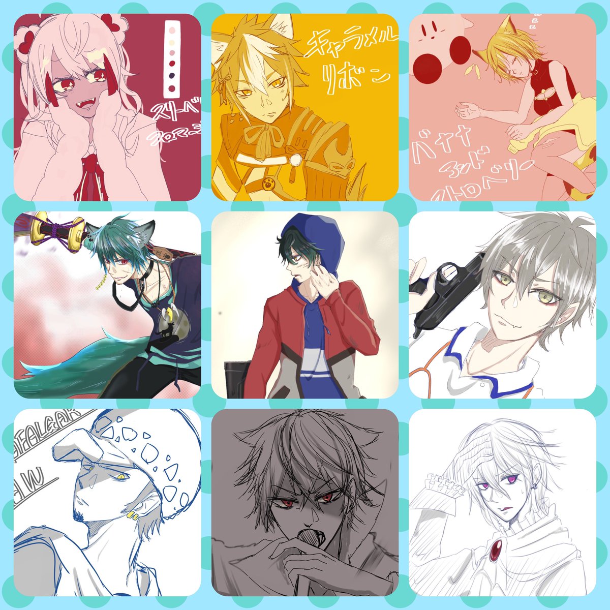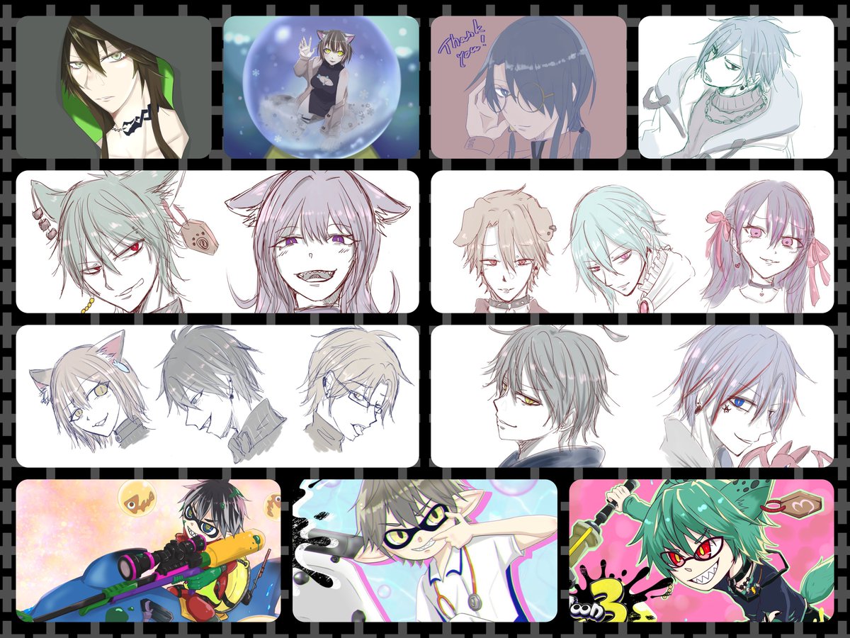 #今月描いた絵を晒す 今月はタグ企画だったり記念日多かったりスプラ発売されたりでFA祭。安定の深夜落書きも多め。 来月はまじめに推しキャラの誕生日とかフォロワーの誕生日祝ったりしたい切実です。がんばるます。
