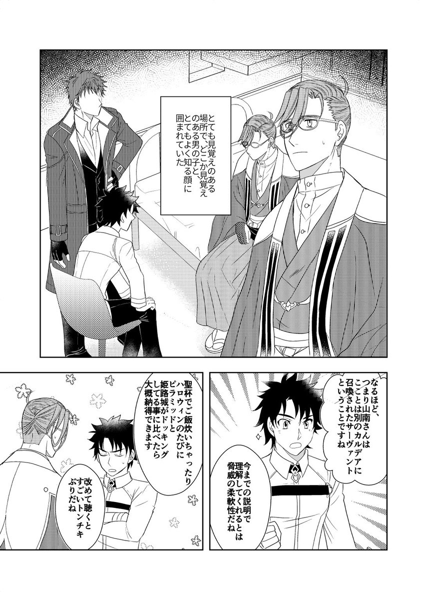 11/28 第35次 ROOT 4 to 5内斎山プチオンリー「#一南去ってもまた一南 新刊サンプルです。支部にもう少しサンプルあります。pixiv.net/artworks/94375… 邪馬台国後、とある本丸の審神者になった山南さんがカルデアのはじめちゃん達と再会する話と、山南さんと刀剣男子たちのギャグやほのぼのです。