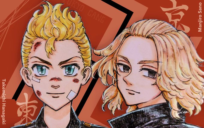 人気投票のハガキに描いた武道とマイキーくんです! せっかくなので載せさせてください🥹 #東卍FA