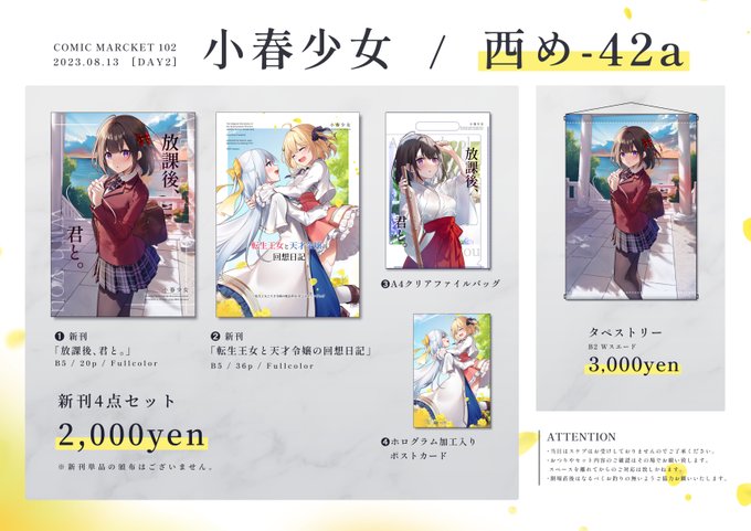 304 963 【C102お品書き】 8/13(2日目)西め-42a「小春少女」にてお待ちしております! 23/08/06 18:39