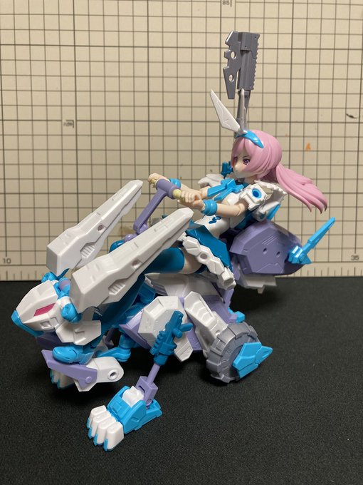 10 37 #メガミデバイス アリス うさぎカート出来た! 一応キットの部品だけで組めてるはず。 前足にはローラーがついてる設定 長時間のドライブでも疲れないようフットレスト付けた。 22/09/24 10:48