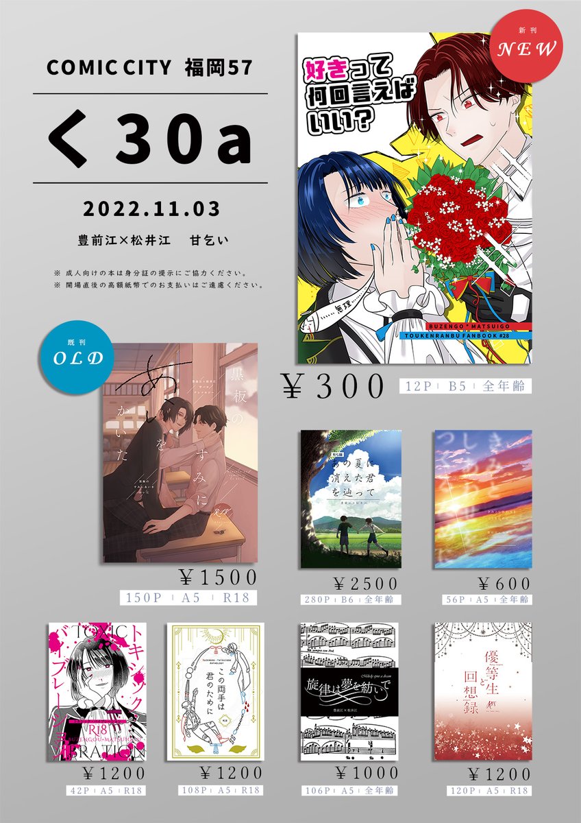 5 9 【11/3CC福岡57】おしながき【く30a】 | 岸本 実 #pixiv pixiv.net/artworks/10230… 22/10/28 23:28