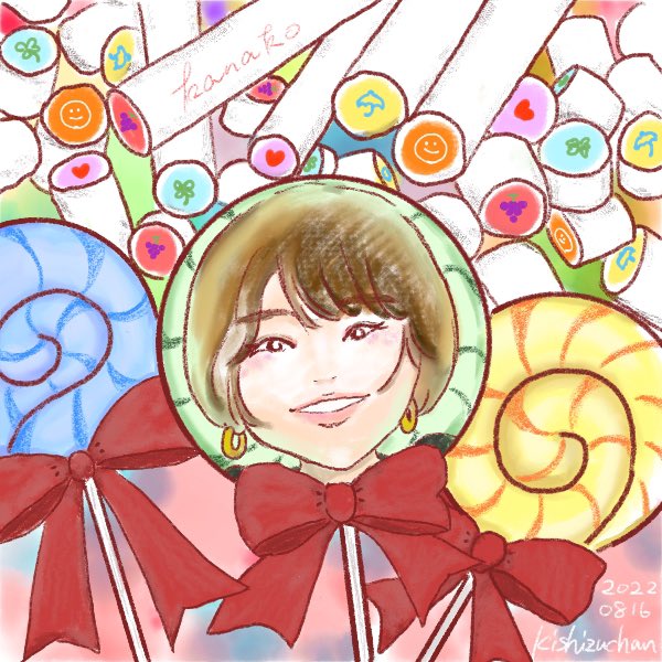 0 5 飴職人として頑張ってるカッコいいオトモダーチ描きました🫶💙 #イラスト #illustration #似顔絵 #高校からの友達 #金太郎飴 #ペロペロキャンディー 22/08/17 21:25